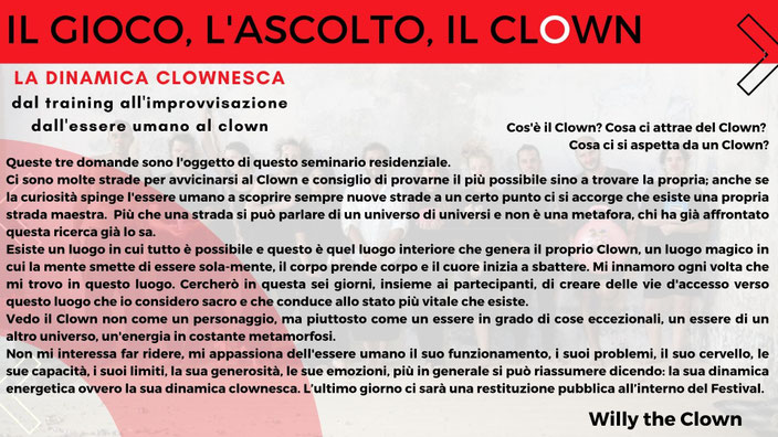 Per iscriversi... scrivere una lettera motivazionale a Willy a office@willytheclown.eu